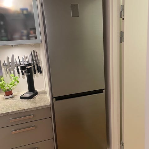 Scandomestic SKF 297 W fritstående køle-fryseskab med en højde på 159,3 cm og en dybde på 54 cm. Skabet har energiklasse E og er designet i hvid farve.