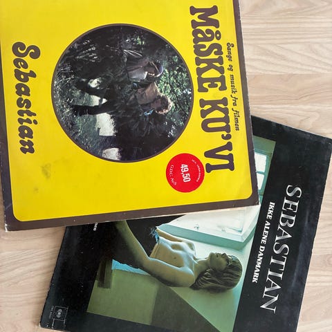 Sebastian Måske Ku' Vi LP vinylplade udgivet af CBS. Indeholder musiknumre fra albummet, afspilles ved 33 1/3 RPM. Sort vinylplade med CBS etiketter i midten. Albummet indeholder sange som "Måske Ku' Vi", "Du Gik På Gaden Først" og "Stråtækkeren".