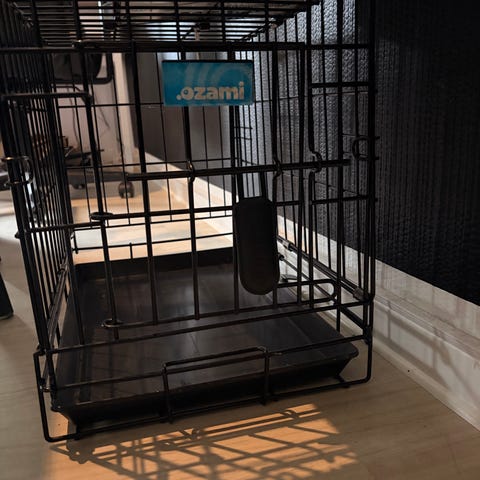 Stort rummeligt bur med mulighed for at gøre det større eller mindre. Buret har kun været brugt i 1 weekend og er blevet vasket af efterfølgende. Buret har ikke tegn på brugspor.