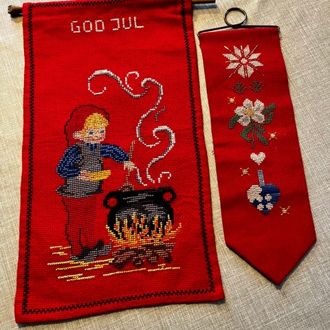 Julebroderi klokkestreng broderi retrojul, Rigtig fine broderede klokkestrenge, fin stand