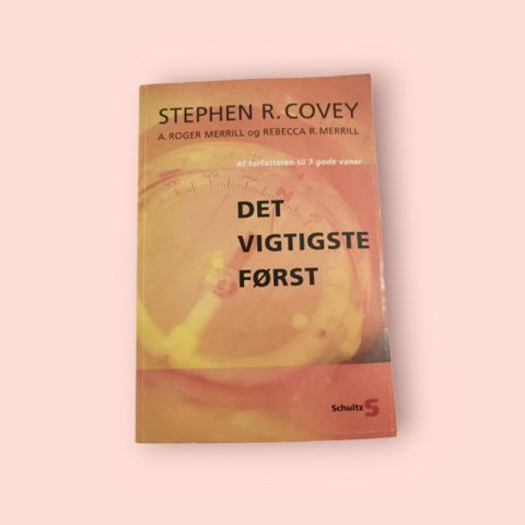 Stephen R. Covey Det vigtigste først bog. Indeholder indhold relateret til prioritering og effektivitet, skrevet af Stephen R. Covey.