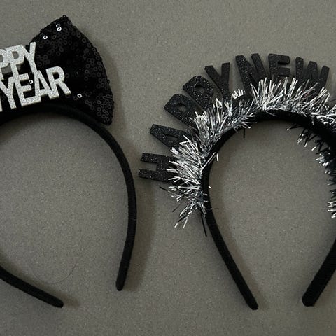 2 hårbøjler i sort farve, Designet til unisex brug og findes i one size.har nytårstema med tekst og dekorative elementer.