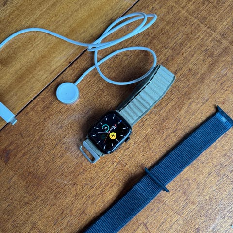 Apple Watch Series 10 CELLULAR + GPS 46 MM smartwatch med sort rem. Uret har afskalning på den ene side, deraf prisen. Meget lidt brugt generelt.