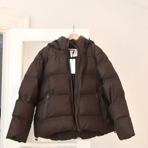 Neo Noir. Puffer jakke/ dynejakke i størrelse 34 til damer. Jakken er mørkeblå. Meget blød og med aftagelig hætte.