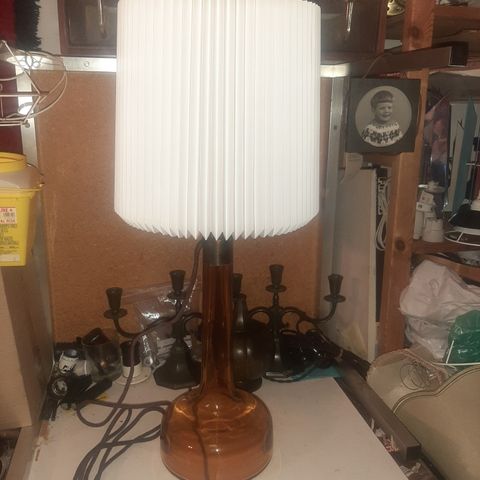 Dansk vintage Murano style. Graciøs STOR Swirl lampe m. mange udtryk. 1 stk Bordlampe, glaspuster lampe, kugleform. Lampefod monteret m. Stor Le Klint skærm, str: Stor passer også/ kan anvendes til Le Klint standerlamperne. + Le Klint Bordlampe stativ metal, hvid. Skifter naturligvis farve efter lysindfald.