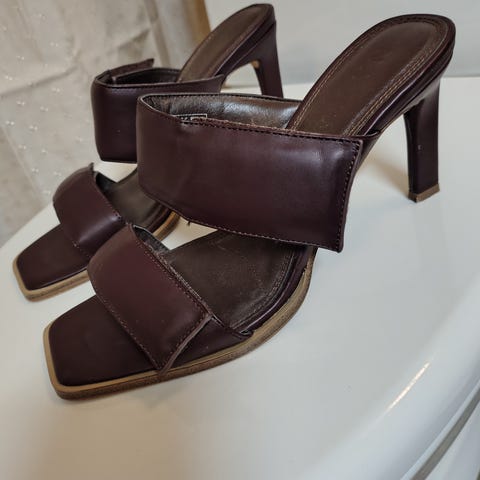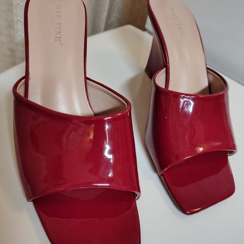 Mules/Kilehæle, str. 39, ZARA, rød lak, kun brugt en gang til ´fotoshooting`, så fine til prisen.
