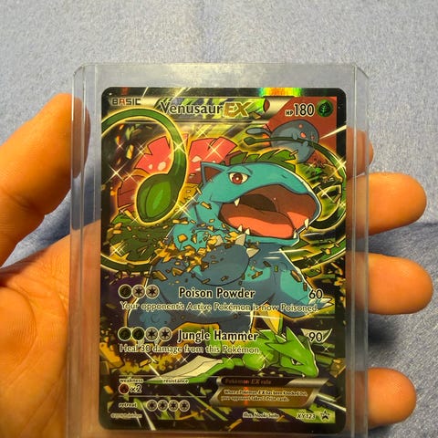 Pokémon Trading Card Venusaur EX med farverig illustration. Kortet viser Venusaur EX som en del af Pokémon-samlingen.
