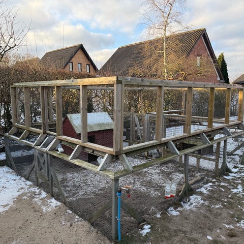 Regntæt løbegård med trækasser til læ: b: 190, h: 85, d: 128