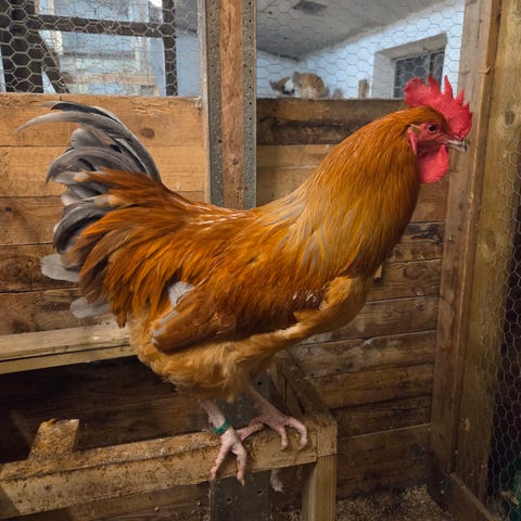 Flot sussexhane gul/sort i stor sælges