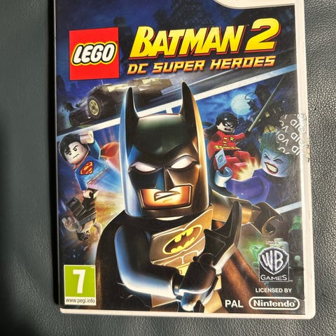 LEGO Batman 2 DC Super Heroes Wii U spil. Spillet inkluderer LEGO-versioner af Batman og andre DC Super Heroes figurer. Passer til en nintendo Wii U. Der er nærmest ingen brugsspor og er kun spillet én gang, dog købt brugt fra DBA.