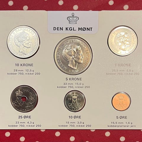 KJØBENHAVNS HANDELSBANKEN MØNTSÆT 1979 i original mappe. 35kr. 6 Mønter, inkl. 10 kr krone 1979, 5 KR KRONE 1979, 1 KR KRONE 1979, 25 ØRE 1979, 10 ØRE 1979, 5 ØRE 1979 MARGRTHE II