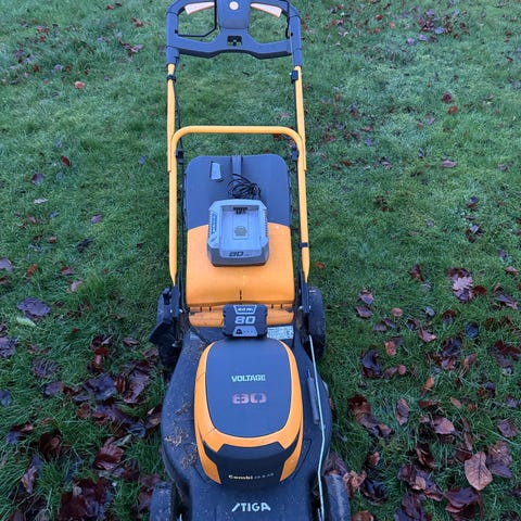 Fin brugt Stiga plæneklipper på batteri. Virker fint, uden fremtræk, men nem at skubbe. Der er opsamler, sideudkast og bioklip. Der medfølger oplader og batteri som virker. Batteriet er ikke nyt, men kan holde ca 500 kvadratmeter græs. Klinge er nyslebet. 46 cm klippebredde. Årgang 2019. Sælges som beset. Befinder sig i 7130 Juelsminde. Kan leveres mod betaling.