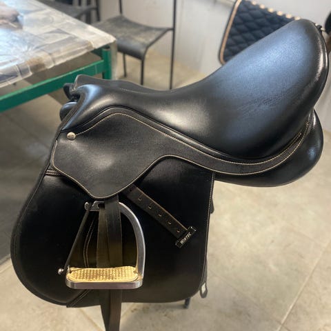 Springsaddel søges til mit barnebarn. PRESTIGE JOY JUMPER 16" OG BOM 32-33.