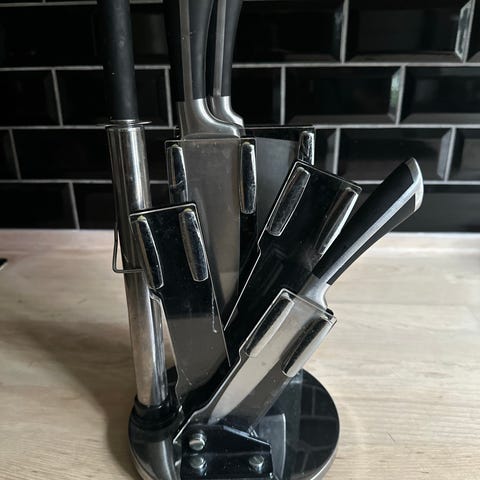 Knivholder Laser fra Richardson Sheffield til 6 knive. Kun de 3 af knivene er Laser-knive