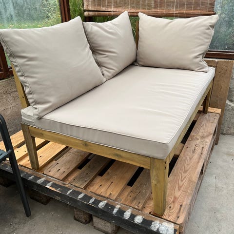 Vores hynde til pallesofa vil være et perfekt valg til afslapning i den bedste komfort i din fritid. Hynden har et universalt design, så den vil nemt passe til havebænken eller pallesofaen, og den passer til ethvert udendørsområde. Hynden til pallesofa er blød og behagelig takket være betrækket i bomuldsstof samt den tykke polstring. Hynden er mere end blot en praktisk tilføjelse; den har også en dekorativ funktion. Farve: AntracitgråMateriale: Stof af 100 % bomuld og blandet bomuldsfyld Mål: 120 x 40 x 7 cm (B x D x H)Med smock-kant og håndtag foran Blød og behagelig