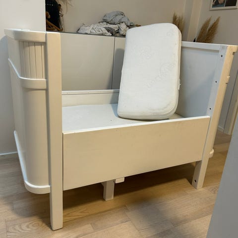Sælger denne org. juno seng fra start 1980’erne, også kendt som lille per sengen, der medfølger en næsten ny 2 delt madres som kan bruges enten slået ind eller ud, den er blivet sprøjtelakeret for nogle år siden, så den står rigtig fin,