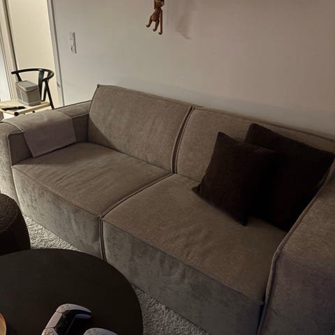 Lyon sofa fra møbelkompagniet i farven capri mørk beige. 2 måneder gammel, stort set ubrugt. Sælges da jeg skal flytte i mindre lejlighed. Mål fremgår på billede. Skal hentes og løftes ned fra 1. sal.