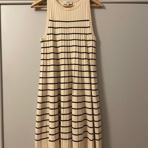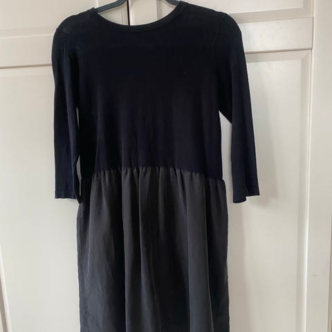 Mørkeblå kjole / tunika fra COS. Overdel i strikket bomuld og underdel i vævet lyocell.