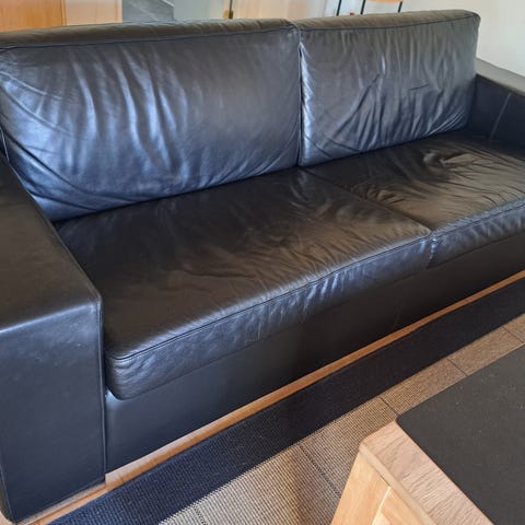 3 personers sofa Kr. 1000,- 2 personers sofa Kr, 500,- Kunstlæder. Den lille er noget slidt, men ellers er begge i god stand. SMS eller ring til Kjeld på 21 48 88 65