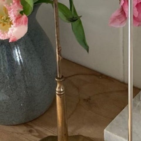 Mindre smuk og antik i patineret/brutineret messing måler H: 40 og fod D: 9 cm og skulle være symbol på Fiskerkonen, der spejder efter manden på havet (er SOLGT)