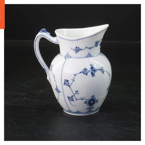 Royal Copenhagen kande i blå porcelæn. Kanden har hank og tud, og er velegnet til servering af væsker. Materialet er porcelæn, og designet er enkelt og funktionelt.