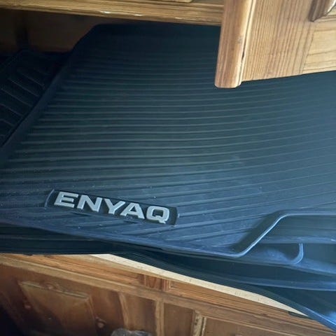 Originalt vintermåttesæt og bagagerumsbakke af gummi til Skoda Enyaq. Har været brugt 1 sæson, men jeg har skiftet bil.