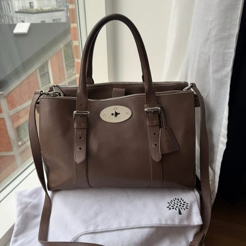 Mulberry Bayswater Double Zip Tote i Pavement Grey Silky Classic Calf læder
