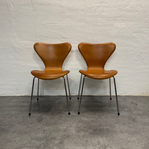 Syverstole i flot patineret cognac læder -originalt polstret hos Fritz Hansen med rødt label.