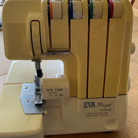 Toyota SL 3314 overlock symaskine med flere trådspoler til overlock-syning. Maskinen er designet til præcise og holdbare sømme, velegnet til det meste.