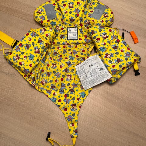 Spinera redningsvest til børn i stribet sort, hvid og rød