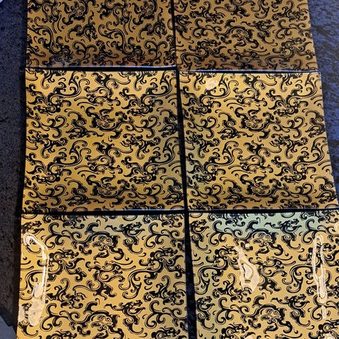 Fine Royal Porcelain Sculpture. Dækketallerkener med flot grøn og guld kant. Brugt få gange, nogle af dem aldrig brugt.