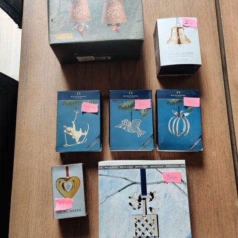 Super fint julepynt fra hhv. Georg Jensen og Rosendahl. Priser mellem 50 og 100 kr. Spørg til pris!