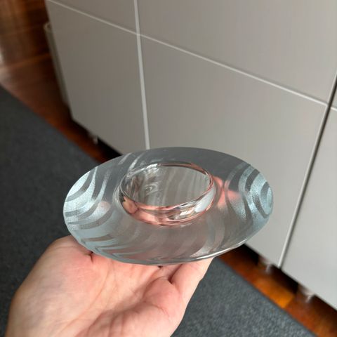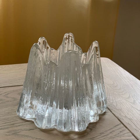 Cool liggende glaskube multifunktionel skulpturel vintage unika lysestage, fyrfadstage, modernistisk adventstage fra 70-80'erne. Tydeligt blåtonet. Alm. str lys + fyrfad