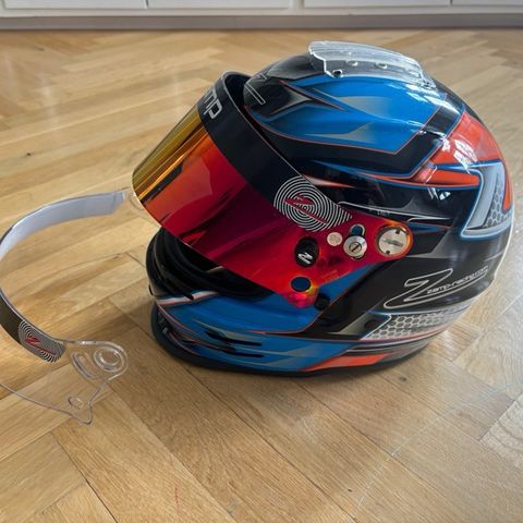 Der medfølger et farvet visir og et blankt visir. Begge i god stand. Det blanke visir er aldrig brugt og har stadig den originale beskyttelses folie