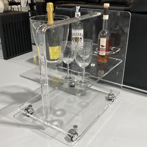Den klare glasplade giver et let visuelt udtryk, mens kromstellet tilfører kant og tidstypisk elegance. Perfekt som kontrastmøbel i både moderne og klassiske indretninger.