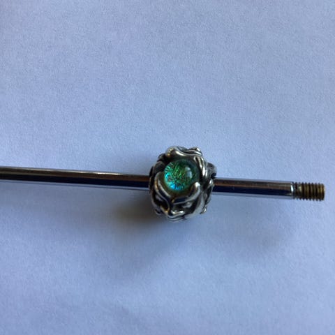 I god stand, en lille knop mangler på glaskuglen med knopper nr 2 fra højre.