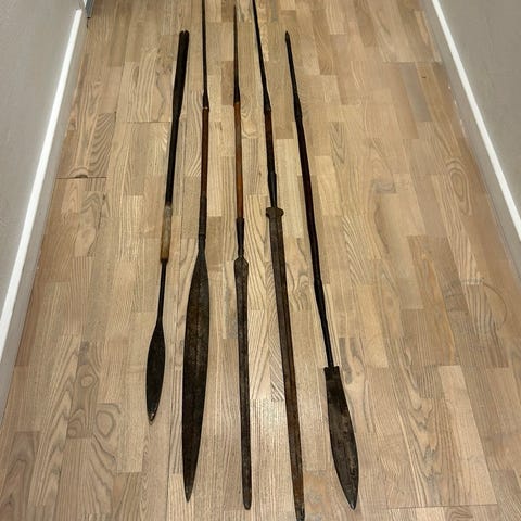 2 delt Masai spyd, nogenlunde stand, og intakt.