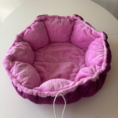 Jerry's Cat Cave er fremstillet i hvid plast med en rund åbning og en blød, aftagelig pude. Designet til katte og giver et beskyttet hvilested.