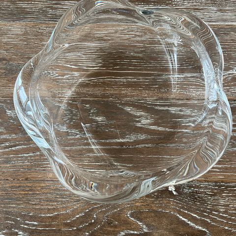 Holmegaard Galaxy glasfad, Meget smukt Holmegaard glasfad i Galaxy serien. Det er den store model med 32 cm diameter og en vægt på 3 kg. Jeg har monteret selvklæbende filtdupper under, men de er lige til at fjerne, hvis de ikke ønskes. Fadet har en lille luftboble i bunden . Derfor den lave pris. Står på Mols men kan gratis leveres i Aarhus eller Ebeltoft eller sendes billigt med GLS på købers regning