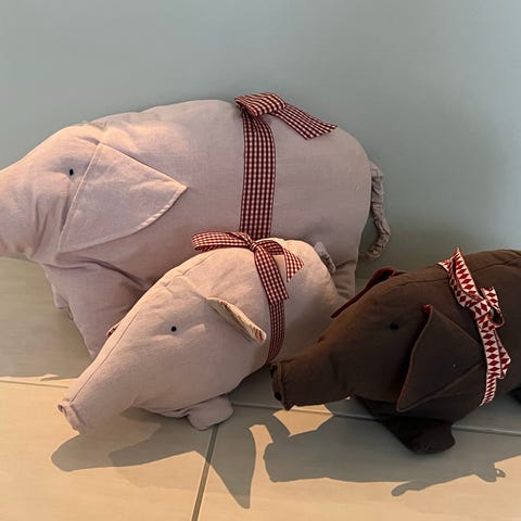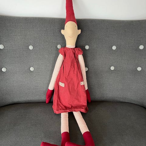 Store, ældre nisser, jeg kender ikke det præcise årstal, men de er nogle af de første fra ca 2001-2003. De måler 120cm, flot stand, sidder selv, ingen blød hals, fra ikke-ryger hjem.