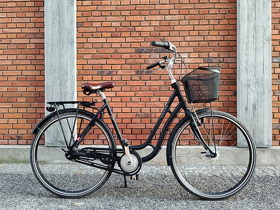 Indvendige gear. Shimano navdynamolygte for. Højt styr. Håndbremse for og fodbremse bag. Køreklar og komplet med klokke, bagagebærer, støttefod, lygter, reflekser og fastmonteret ringlås med 2 nøgler. Yderst behagelig, rank og høj kørestilling. Passer til høj som lav, og jeg indstiller styr og sadel så cyklen passer lige til dig. Str. 55 cm. 3 gear. Stelnr.: WGH910557K. (Ved henvendelse angående cyklen, for hurtigere respons, sms eller ring venligst på 22 13 21 30, eller benyt messenger ved at trykke på "gå til varen" knappen).