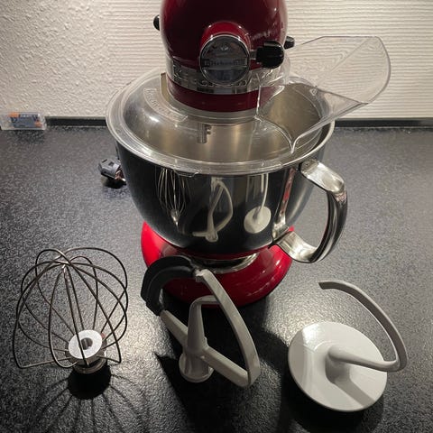 Der medfølger rustfri skål, piskeris, dejkrog og fladpisker.