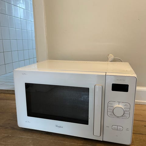 Whirlpool MWD122 mikrobølgeovn i hvid farve. En mikrobølgeovn med manuel betjening og drejeknapper til indstilling af tid og effekt. Indvendigt glasdrejeskive til jævn opvarmning. Velegnet til opvarmning og optøning af mad. Den er med grill funktion. Den er super velholdt. Jeg har aldrig brugt grillen.