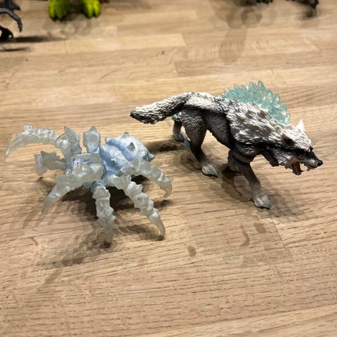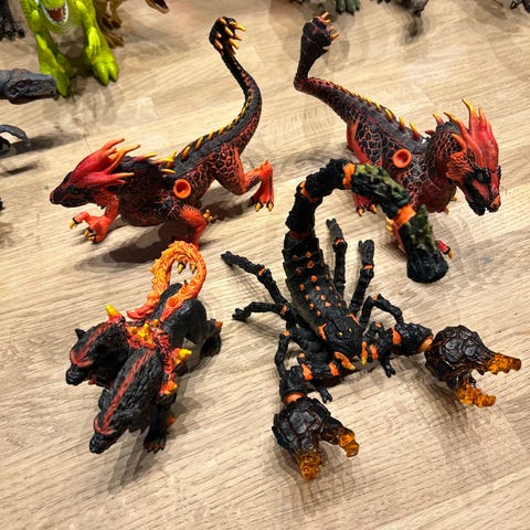 Schleich dyrefigurer bestående af en krokodille og en slange. Figurerne er detaljerede og lavet i plastmateriale. Velegnet til samling eller leg.