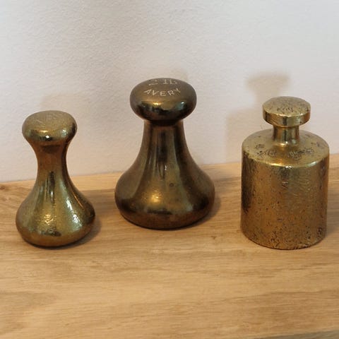 Sæt med 6 stk. Gamle messing lodder i kasse, nogle er over 100 år gamle. Ps. Se også mine andre annoncer med lodder. Kan sendes eller afhentes i 3140