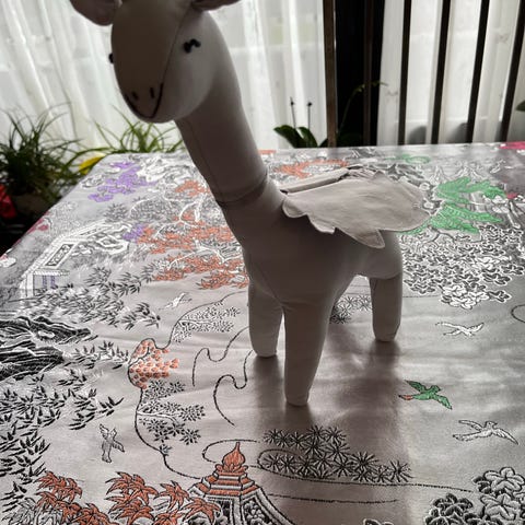 Plush giraffe. It is in pretty good condition. It is approximately 95 cm.