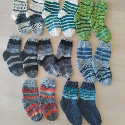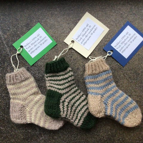Uundværlige hjemmestrikkede uldsokker til baby og fin lille håndstrikket pyntekrave.