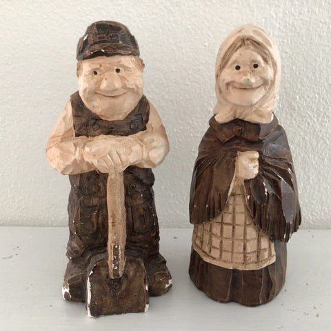 Kvindefigur støbt i gips, kone med tørklæde.