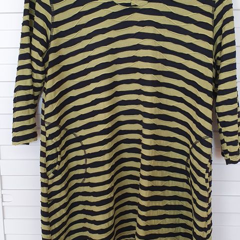 Tunika, str 52. Bm 64 x 2, længde foran 70 cm, bagpå 75 cm. 12% elastan. Brugt en gang. Sød detalje v ærme.