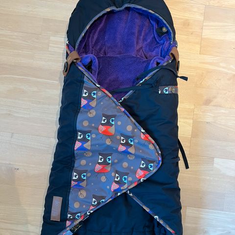 Jeg sælger to soveposer/køreposer fra sleepbag, som vores tvillingepiger er vokset ud af. De er mørkeblå med sandfarvet inderside. De er brugt, men i rigtig god stand uden manglende knapper eller andet.